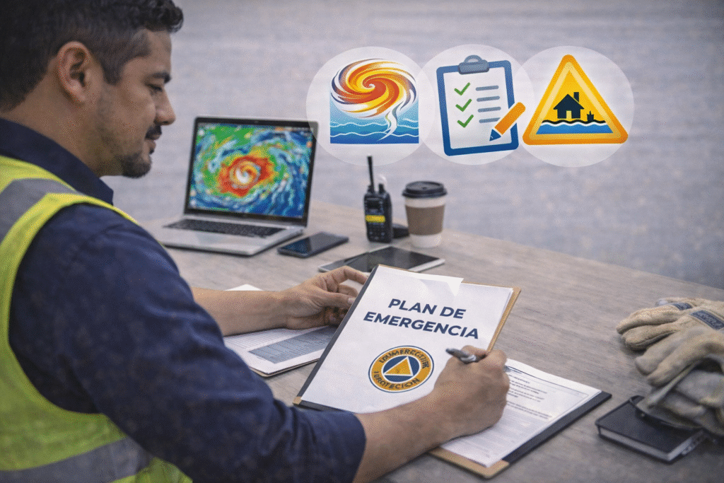 Objetivo General: El participante elaborará un Plan de Emergencia específico para ciclones tropicales y temporada de lluvias, mediante el análisis de riesgos, la identificación de vulnerabilidades y la planificación de acciones preventivas, de preparación, respuesta y recuperación, conforme al marco normativo vigente en México.